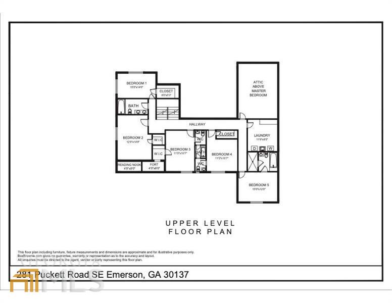Beautiful, custom home situated on 5.33 acres with riparian rights, located on private road. Well-appointed 6,800 sq. ft. floor plan includes 8 large bedrooms, 5.5 bath, three car carport and expansive deck overlooking the pool and secluded backyard, access to the Pumpkinvine Creek. The property is surrounded by mature trees and forest providing additional privacy and security. The home boasts an abundance of natural light throughout, vaulted ceilings, wood to wood flooring on the main level and master suite, new carpeting in the bedrooms. Unique features include custom built ins, expansive kitchen with keeping room and informal dining area, two laundry rooms, entertainment room, dedicated storage room and three fireplaces; see photos for floor plan. Minutes to Redtop Mountain National Park and Lake Allatoona, 30 minutes to Downtown Atlanta, 45 minutes to Atlanta International Airport. All interior photos of the home have been virtually staged.